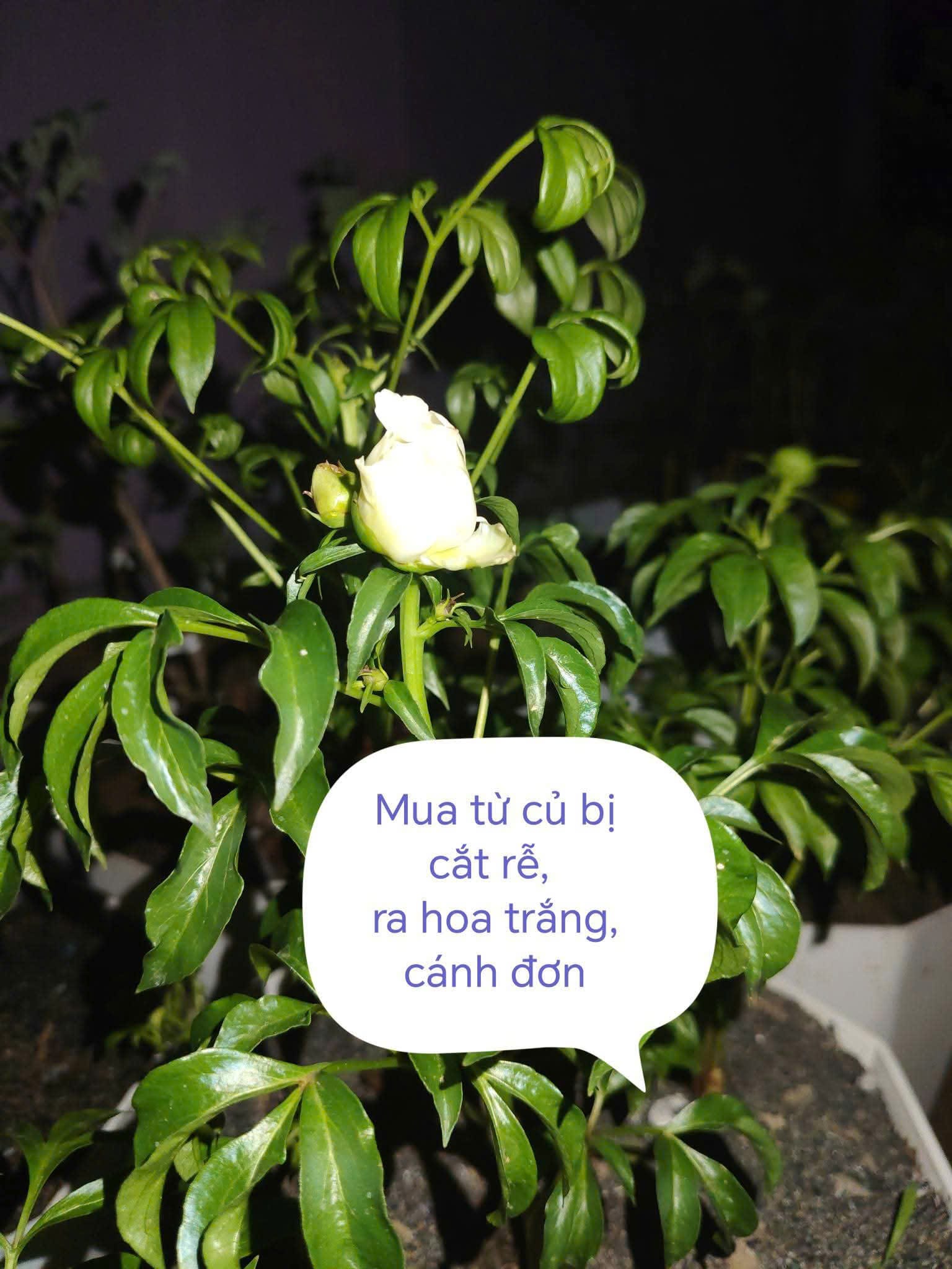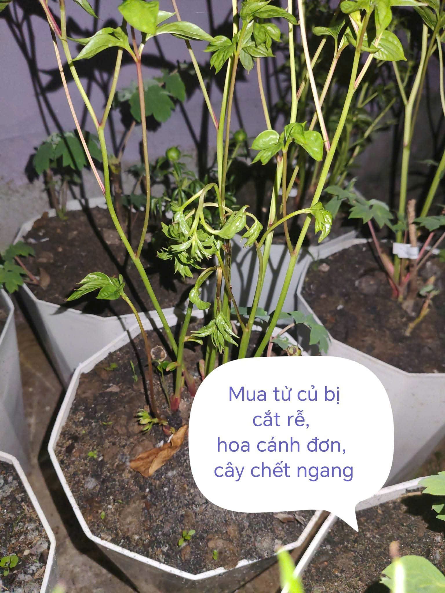 – Mua củ mẫu đơn trên các sàn thương mại điện tử Trung Quốc: mua được 32 củ giả (củ bị cắt rễ củ, có cây trồng sống, ra hoa trắng, có cây chết ngang), và mua được khoảng 50 củ không bị cắt rễ (có thật có giả, họ lấy củ của loại cánh đơn bán cho mình, họ không cắt rễ nên nhìn như nhau, dù sao cũng an ủi vì củ không cắt rễ thì cây có thể sống thọ nhiều năm, chỉ là hoa của nó không đẹp như mình muốn, dưới 15 cánh hoa ak, chỉ có thể trồng lấy củ làm thuốc thôi, mình biết cách dùng làm thuốc nên xem như an ủi, hoặc dùng củ đó tán bột trộn vào đất thì đất rất tốt, ít bị sâu bệnh phá hoại vào các vụ sau vì rễ của nó có chất kháng bệnh).